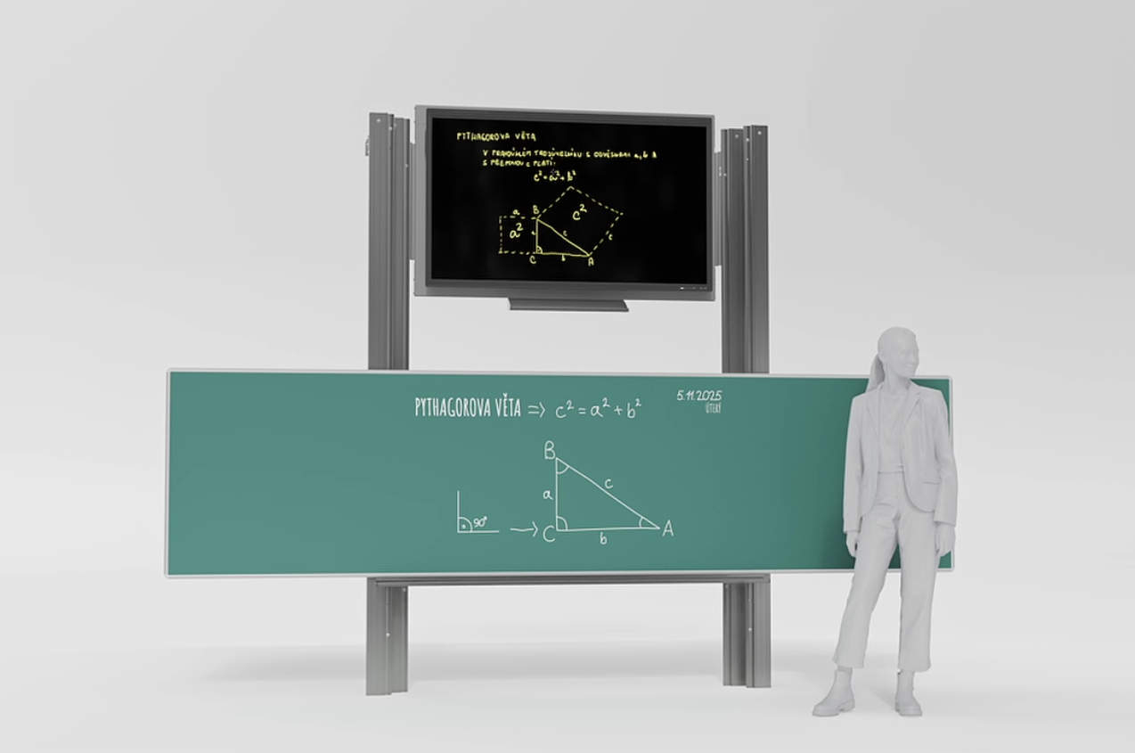 Interaktivní displej 65" s tabulí na křídu na pylonech