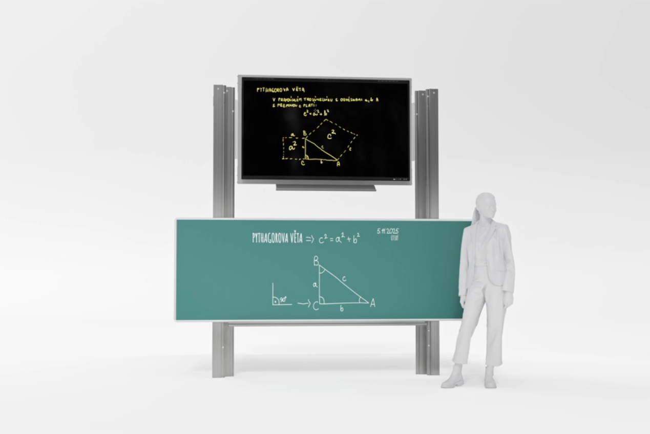 Interaktivní displej 75" s tabulí na křídu na pylonech