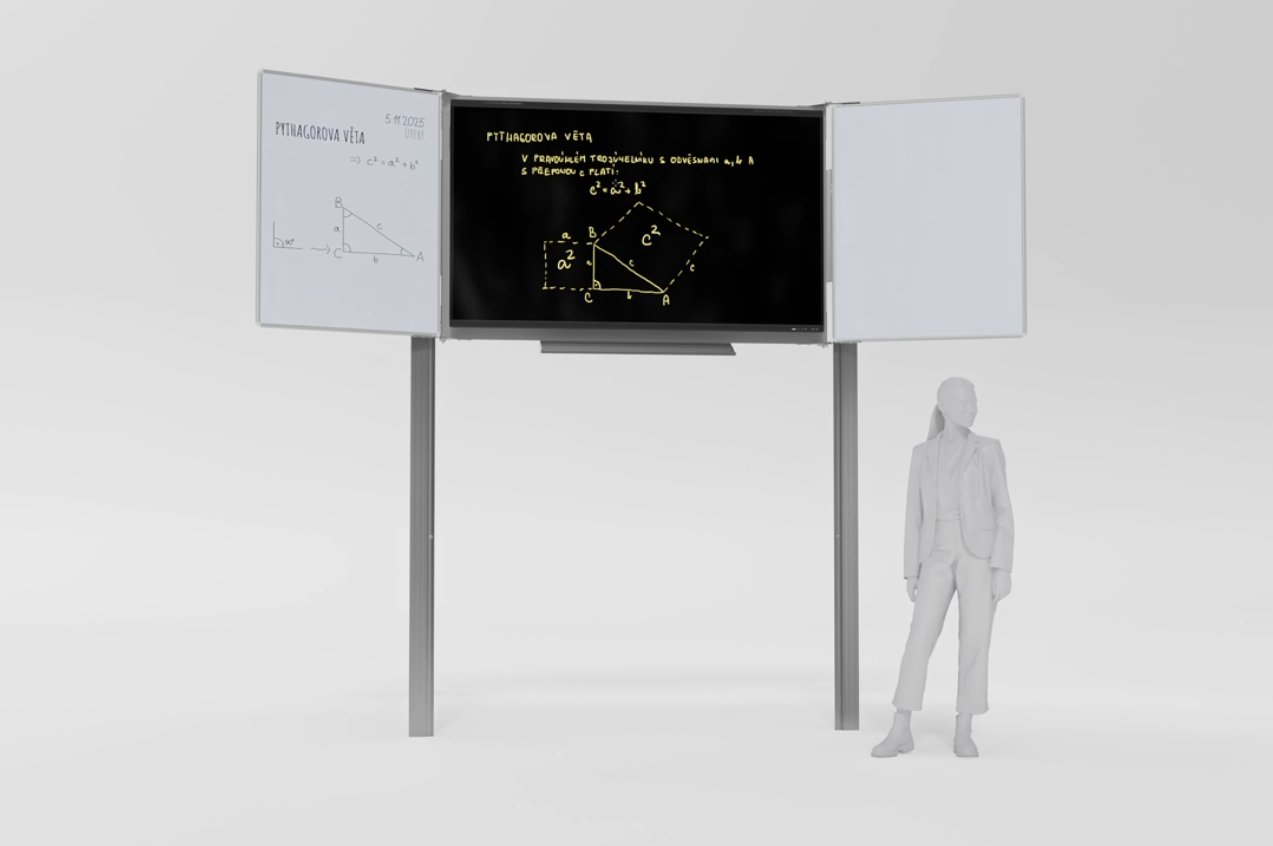 Sada pylonového zvedacího systému a křídel pro popis fixem a křídou určená pro LCD panely úhlopříčky 86".