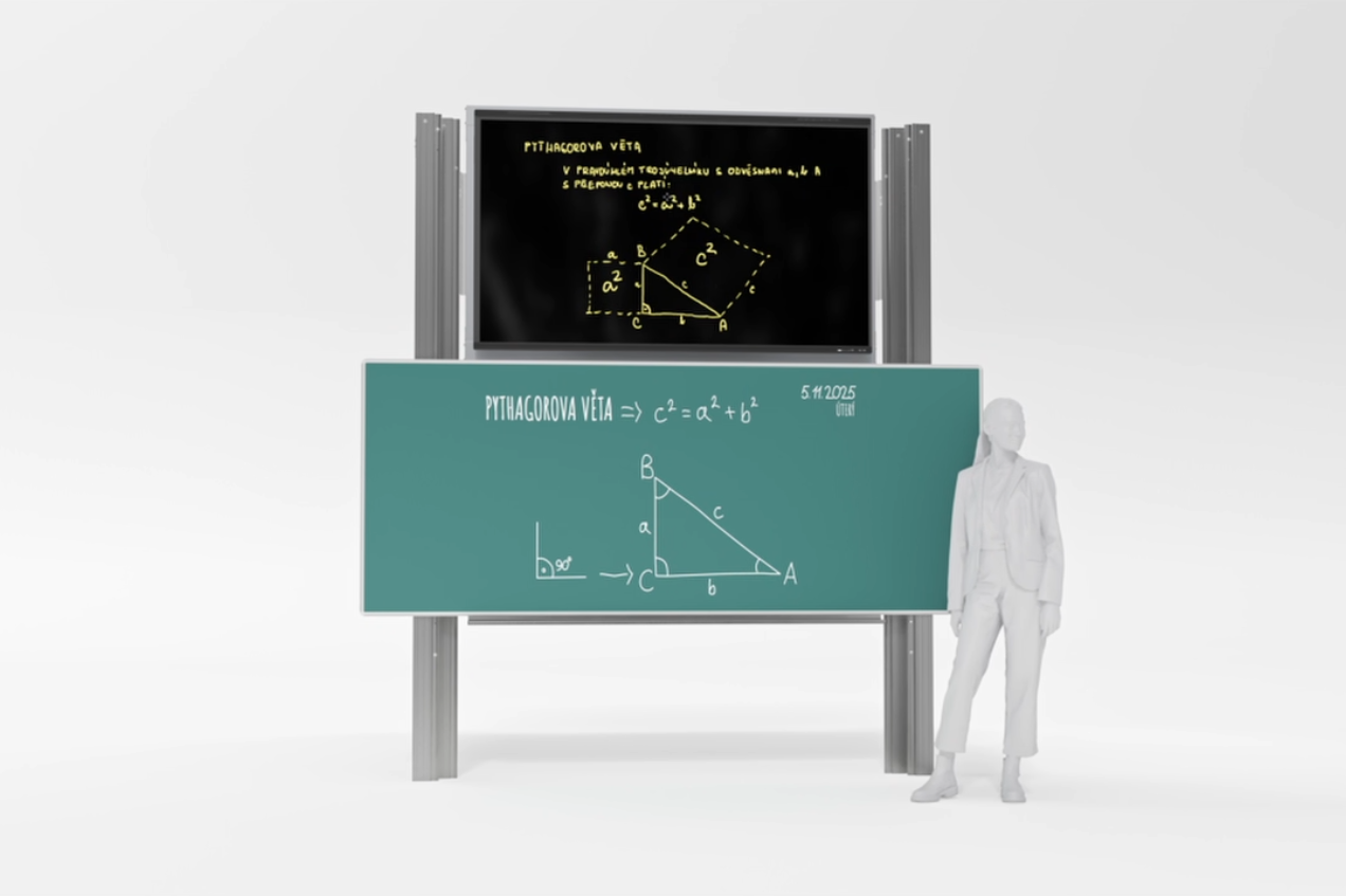 Interaktivní displej 86" s tabulí na křídu na pylonech