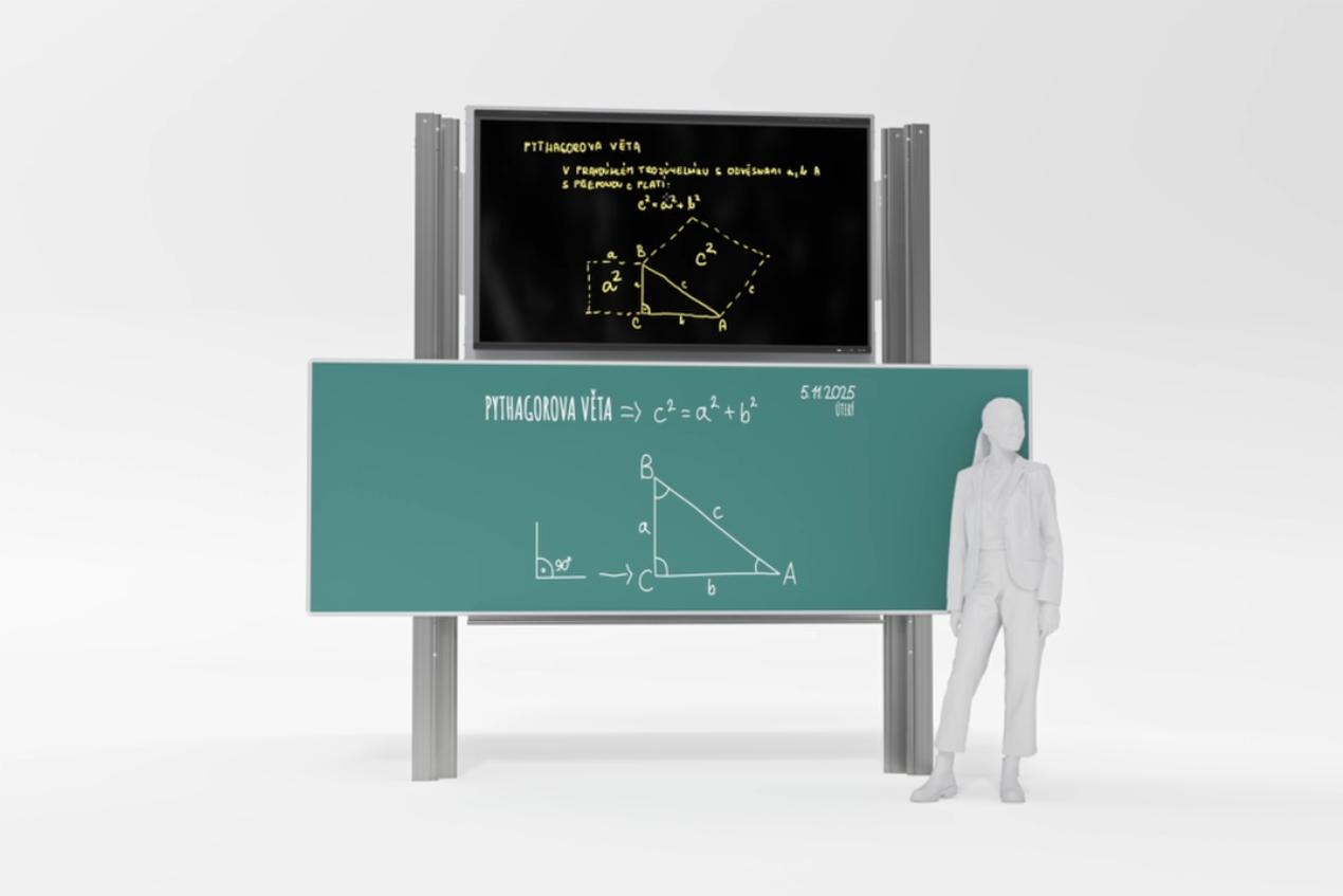 Interaktivní displej 86" s tabulí na křídu na pylonech