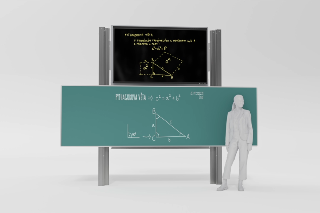 Interaktivní displej 86" s tabulí na křídu na pylonech
