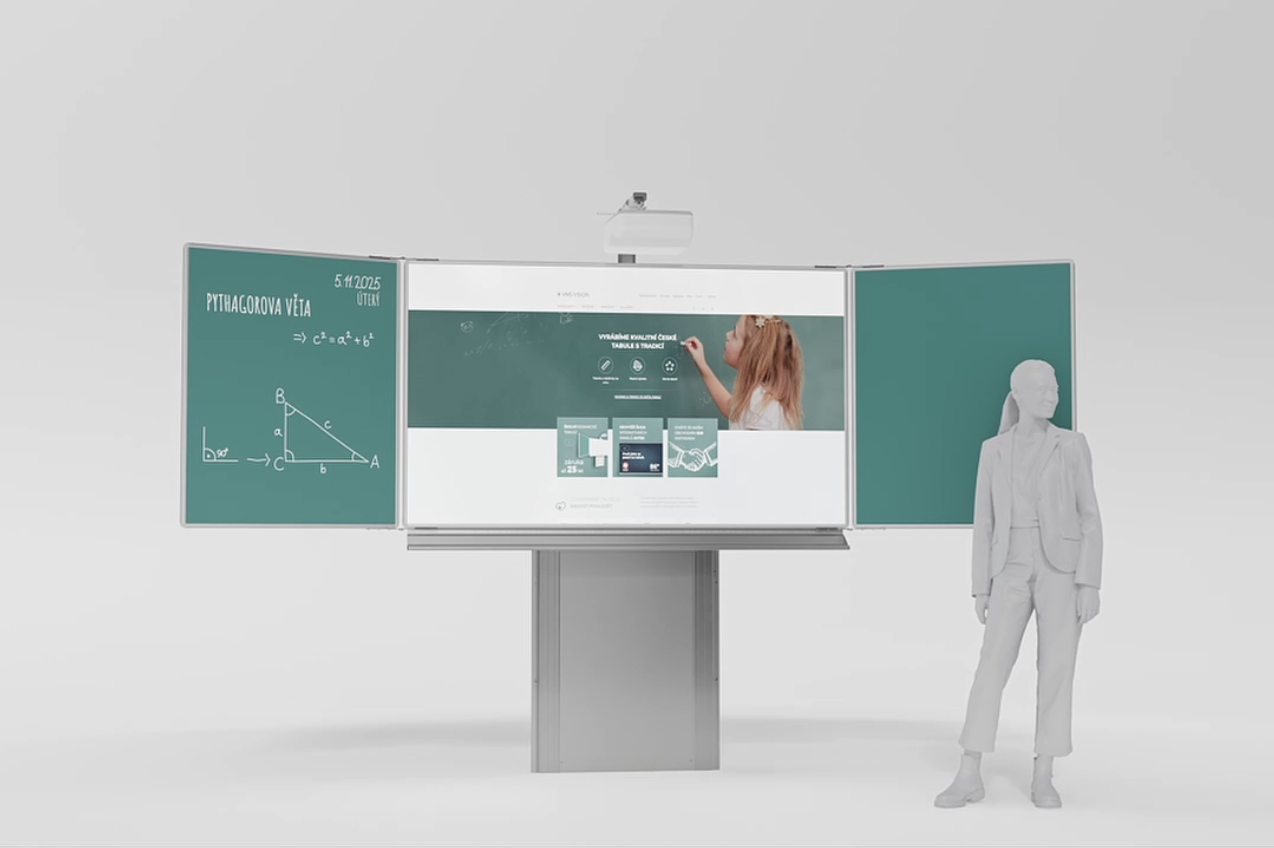 - Více než půlmetrový rozsah vertikálního pohybu tabule dovoluje pohodlnou práci učitelů i žáků.